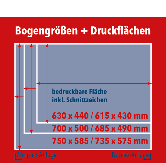 – 0,06 – 0,45 mm (Schön-/Widerdruck) - cmyk Tinte mit riesigem Farbraum – HKS und Pantone Simulation